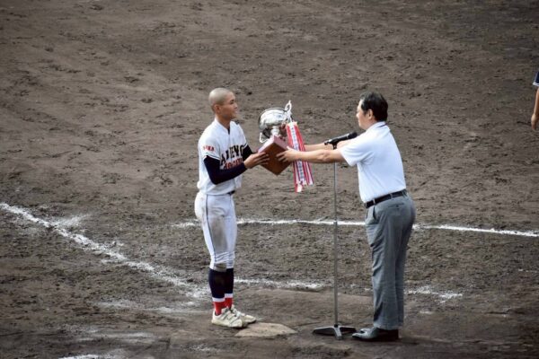 続く渡(2年/大阪市立市岡中学校)がライト前安打を放ち欲しかった追加点を取ります。